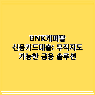 금융이 필요한 순간, 특히 신용카드를 소지하고 있는 분들에게 BNK캐피탈 신용카드대출은 구세주가 되어줄 수 있어요. 많은 사람들이 대출을 고민하지만, 특히 무직 상태에서는 대출 신청이 더욱 어려워지는 것이 현실입니다. 그러나 BNK캐피탈은 이러한 고객들을 위해 다양한 금융 솔루션을 제공하고 있습니다.