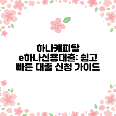 하나캐피탈 e하나신용대출: 쉽고 빠른 대출 신청 가이드