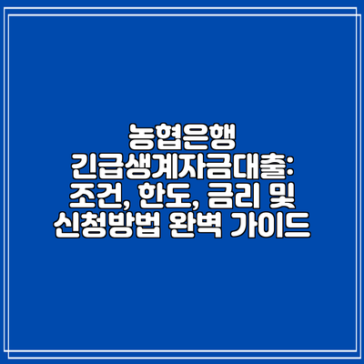농협은행 긴급생계자금대출: 조건, 한도, 금리 및 신청방법 완벽 가이드