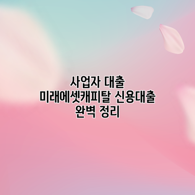 사업자 대출 미래에셋캐피탈 신용대출 완벽 정리