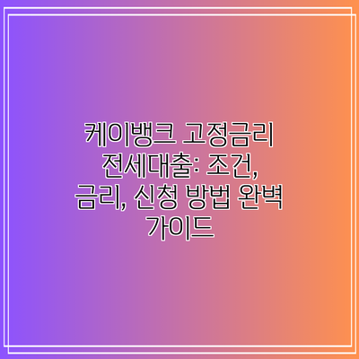 케이뱅크 고정금리 전세대출: 조건, 금리, 신청 방법 완벽 가이드