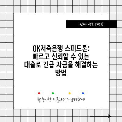 OK저축은행 스피드론: 빠르고 신뢰할 수 있는 대출로 긴급 자금을 해결하는 방법