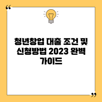 청년창업 대출 조건 및 신청방법 2023 완벽 가이드
