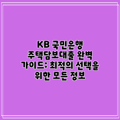 ✅ 국민은행 주택담보대출의 모든 조건을 쉽게 알아보세요.