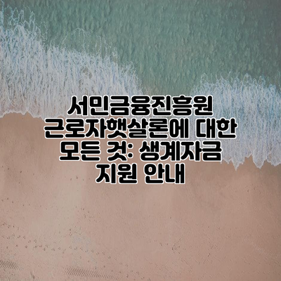 서민금융진흥원 근로자햇살론에 대한 모든 것: 생계자금 지원 안내