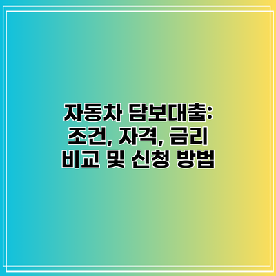 자동차를 소유하고 있다면, 당장 금융의 필요성을 느낄 때가 많습니다. 그때 바로 떠오르는 것이 바로 ‘자동차 담보대출’입니다. 자동차 담보대출은 차량을 담보로 하여 대출을 받을 수 있는 방법으로, 신용 대출의 대안으로 많이 활용됩니다. 이 글에서는 자동차 담보대출의 조건, 자격, 금리 비교 및 신청 방법에 대해 자세히 알아보겠습니다.
