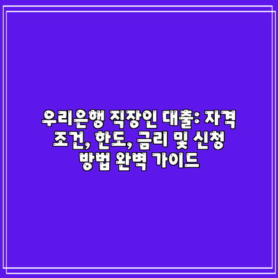 우리은행 직장인 대출: 자격 조건, 한도, 금리 및 신청 방법 완벽 가이드