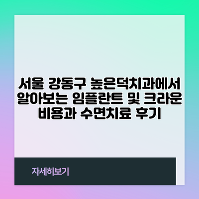 서울 강동구 상일동에 위치한 높은덕치과의원은 환자들에게 많은 사랑을 받고 있는 치과입니다. 특히, 임플란트와 크라운 시술에서 좋은 평가를 받아 많은 사람들이 이곳을 찾고 있습니다. 이제 저와 함께 높은덕치과의 임플란트 및 크라운 비용, 수면치료 후기 등에 대해 자세히 알아보도록 해요.