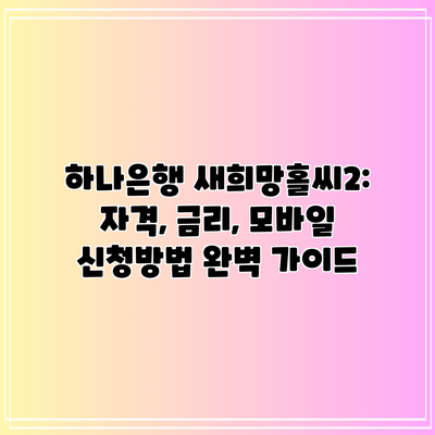 하나은행 새희망홀씨2: 자격, 금리, 모바일 신청방법 완벽 가이드