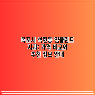 목포시 석현동 임플란트 치과: 가격 비교와 추천 정보 안내