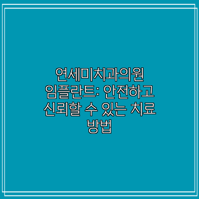 연세미치과의원 임플란트: 안전하고 신뢰할 수 있는 치료 방법