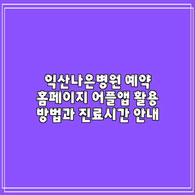 익산나은병원 예약 홈페이지 어플앱 활용 방법과 진료시간 안내