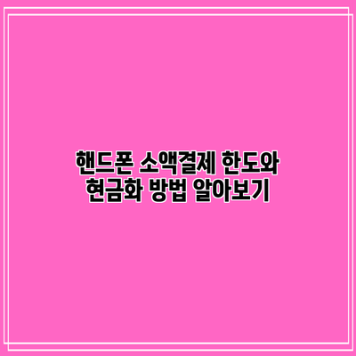 핸드폰 소액결제 한도와 현금화 방법 알아보기