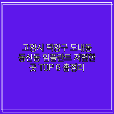 고양시 덕양구 도내동 동산동 임플란트 저렴한 곳 TOP 6 총정리