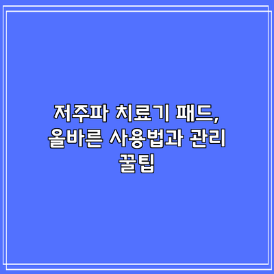 저주파 치료기 패드, 올바른 사용법과 관리 꿀팁