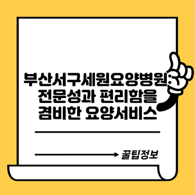 부산서구세원요양병원: 전문성과 편리함을 겸비한 요양서비스