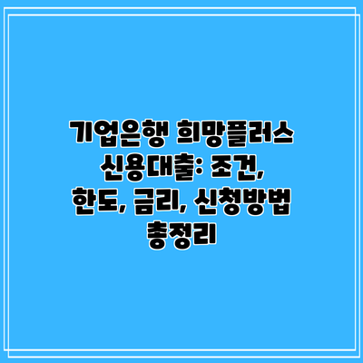 기업은행 희망플러스 신용대출: 조건, 한도, 금리, 신청방법 총정리