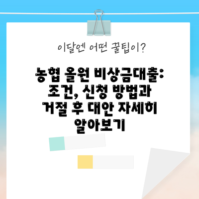 농협 올원 비상금대출: 조건, 신청 방법과 거절 후 대안 자세히 알아보기