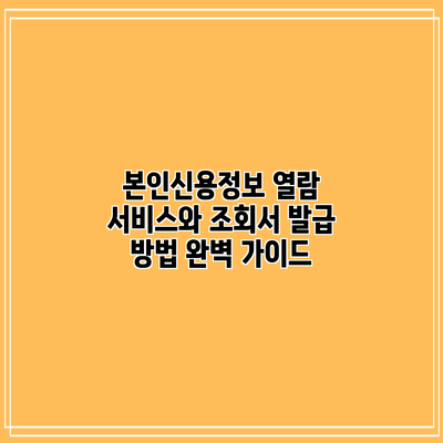 본인신용정보 열람 서비스와 조회서 발급 방법 완벽 가이드