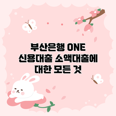 부산은행 ONE 신용대출 소액대출에 대한 모든 것
