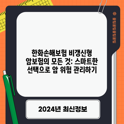 한화손해보험 비갱신형 암보험의 모든 것: 스마트한 선택으로 암 위험 관리하기