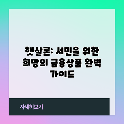 햇살론: 서민을 위한 희망의 금융상품 완벽 가이드
