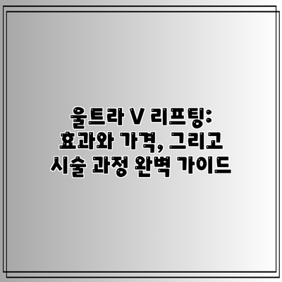 울트라 V 리프팅: 효과와 가격, 그리고 시술 과정 완벽 가이드