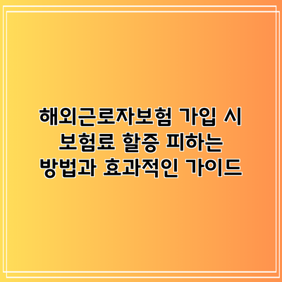 해외근로자보험 가입 시 보험료 할증 피하는 방법과 효과적인 가이드